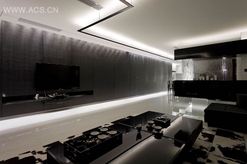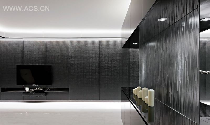 贯穿全室的黑墙将空间一分为二:接待宾客的公共区域——人前武装的心境;及专属的私人领域——小女孩纯真梦想的真实面向。