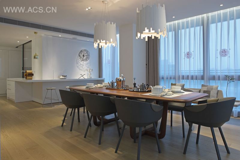 项目为拥有一线海景的复式滨海大宅。一层公共区域,客厅与餐厅间的开敞格局,使两个相对独立的空间形成互动,在无形中扩大了空间感。主卧及相对私密的休闲区设在二层,对比一层的“动”,二层凸显了更多的轻松与“安静”。材质的搭配方面,运用了大量的木元素,与丝、麻及部分有着漂亮肌理的石材相结合,营造轻松,休闲又不失亲切的滨海大宅气质。