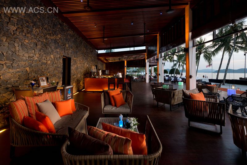 厅位于海滩一端,面朝安达曼海。户外休息室、甲板和用餐区域的巧妙布局使得所有客人都能享受到绝美的日落景观。