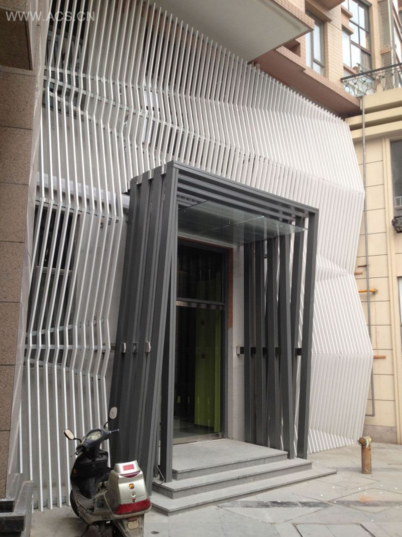 未改造之前的咖啡馆位于商住综合体的一个角落里,累赘的窗户对外开着,外立面上有横七竖八的各种管道。我们的目标是通过对内部和外部的改造让咖啡馆焕然一新。通过简约设计来隐藏累赘的门窗,对内部的设计和对外立面的改造相结合是此设计要点。运用铝管线作外墙设计,隐藏外面乱七八糟的管道,突出外立面,并与内部设计相呼应,使这个陈旧的建筑焕然一新。