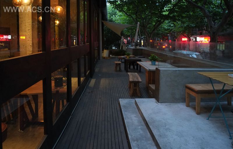 这是一间位于上海田子坊附近的咖啡馆,它有一个不太规整的室内空间和一个露台,在功能上混合了酒吧和鸡尾酒的元素。装饰全部用可循环及回收材料来建造,并适当保留原建筑的表面,尊重环保精神。材料显示了一种淡淡的都市疏离感,同时空间上规整的几何线条又隐喻了对都市的依托性,并掩盖了原场地的缺憾。