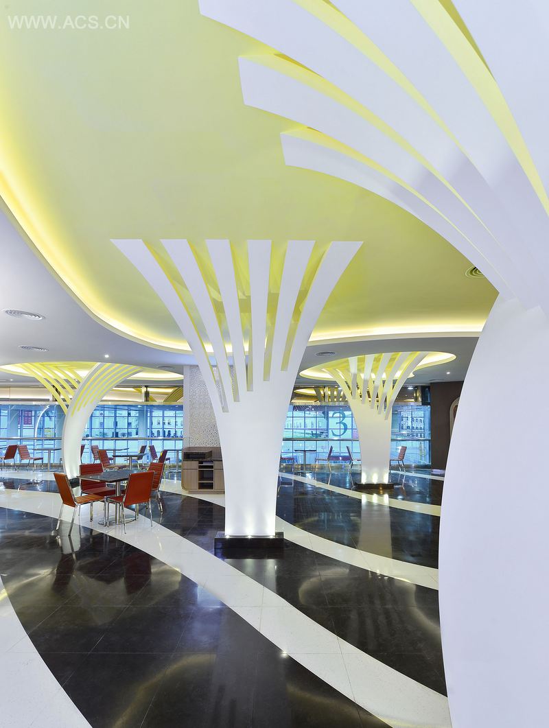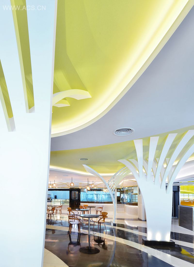 设计理念是创造出在荫凉下休憩的感觉。设计师在开发的空间中种植了五棵树。这些树的灵感来自于中国传说中的“摇钱树”——种摇动时能掉落钱币的树。这些树黄色的“树冠”代表着财富和繁荣,与澳门作为东方赌城的形象相适宜。地板上的等高线设计与这些树和谐一致,不同的地面颜色代表了不同的区域。