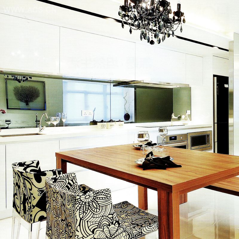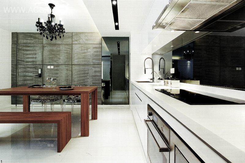 单位设计以简朴自然为主。大门及邻近墙壁饰以水泥批荡配灰镜特显形格;纹理天然的木长抬连凳,质朴自然。光从天花灯槽丶厨柜底有节奏地出现,一上一下特别亮眼。沙发背後划出工作区,光亮通明。床头墙上贴马尾毛墙纸丶床头板扪上紫色丝绒布特显贵气。厕内配椭圆面盆及淋浴区铺上马赛克砖砌出夸张图案,带出视觉趣味。