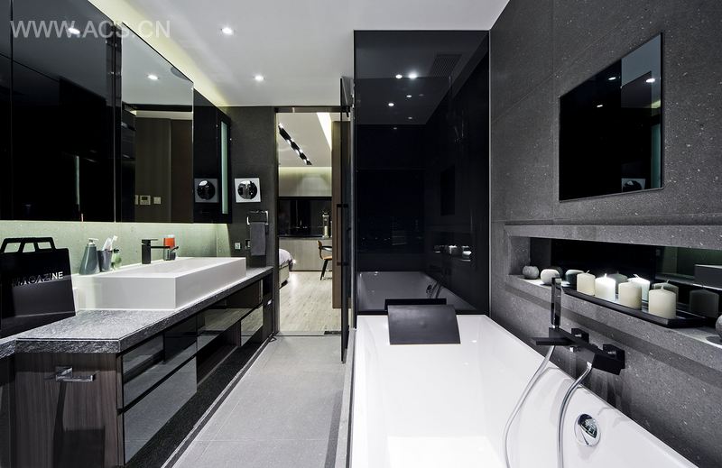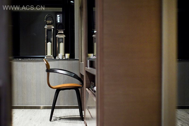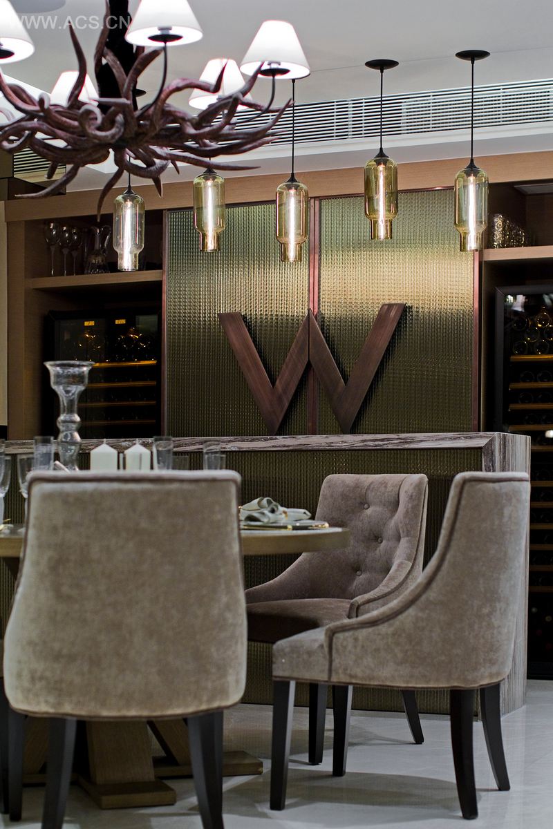 对于样板间来说,客厅和餐厅扮演着重要角色。餐厅的特色是一只特别的鹿角垂饰,现代风格的迷你吧有着W形状的门把手,呈现出奢华闲适的气派。客厅的电视特色背景墙由云石制成,配合间接照明,创造出独特的优雅氛围。