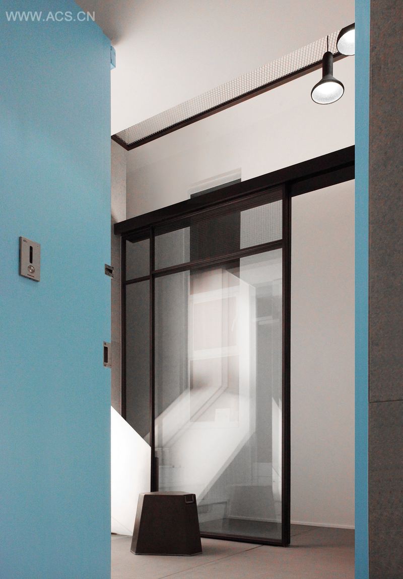 除了门的朝向和家具摆放的相关问题外,本案的室内不能出现任何木质家具,但却可以大量使用金属制品。由于白色代表金属,设计师运用白色的背景来与原始的水泥板和砖墙产生对比。