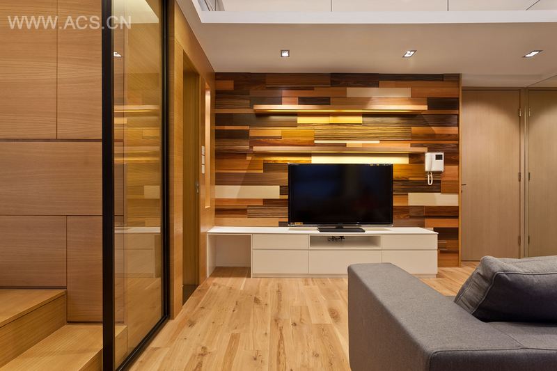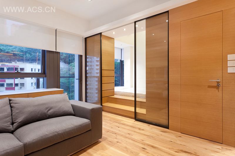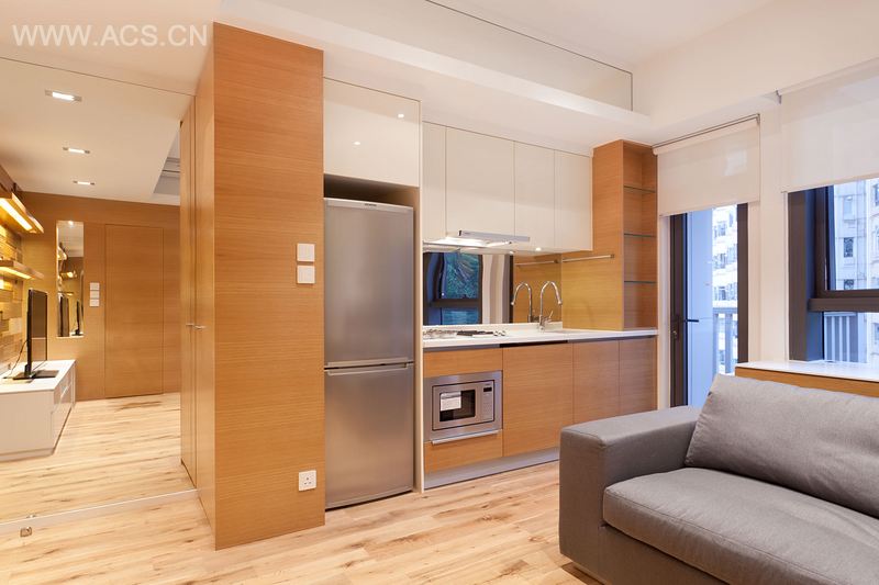 这间面积为540平方米的公寓,是中国香港大坑地区新竣工的住宅项目——尚峦中的一间。公寓起初的布局是一卧室和单独的厨卫空间,加上超高的天花板,空间显得又小又狭窄。设计之初,我们移除了厨房和卫生间的墙面,使用天然橡木让空间焕然一新。