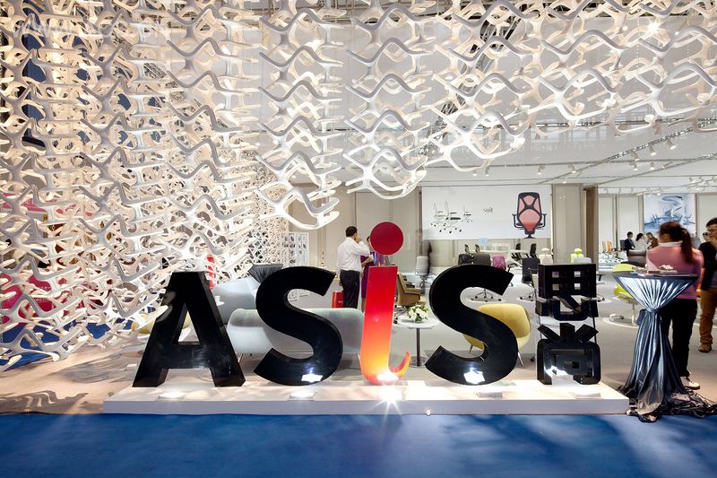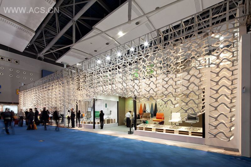 利用“ASIS”系列办公家具展示和以“SUIT”系列椅子靠背作为整体设计的基本外观,创造出被各种复杂而呈流线型的元素包覆的一种混合的感觉,为参观者营造出个人的触感,即使是匆匆一瞥也能留下深刻印象。