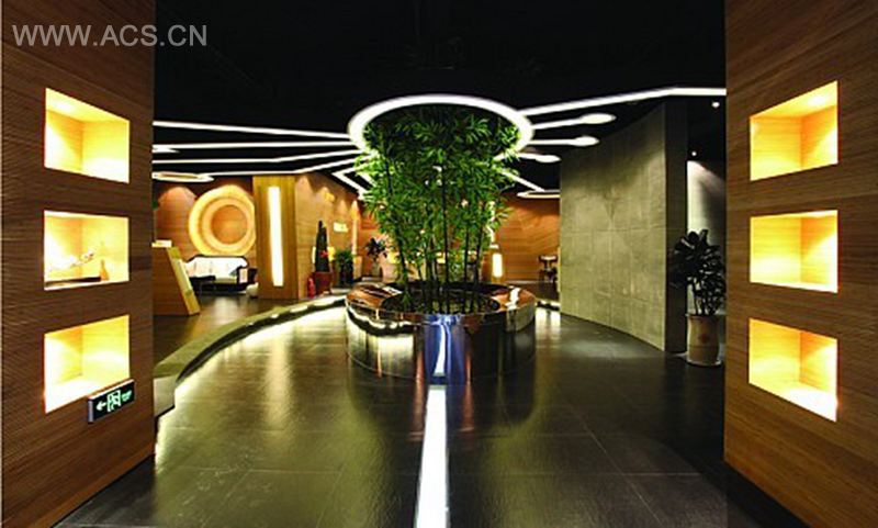 本设计灵感来源于影片《创战纪》的高科技视觉效果,太空舱式的空间理念,采用木皮质材质和LED 环保灯光效果打造一个魔幻且具有深度的享受空间,给人无尽的遐想,灵动气息十足。不失时尚大气的艺术品味,环保且贴近自然的设计理念,给人另类的视觉冲击和别样的科技感和前卫感。