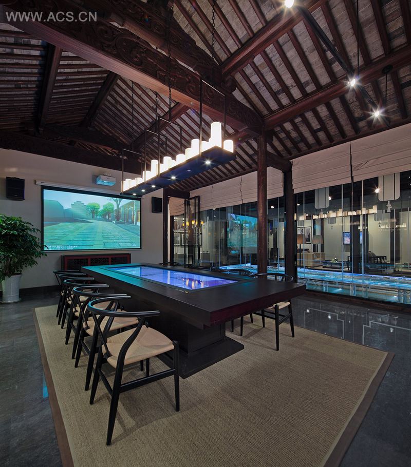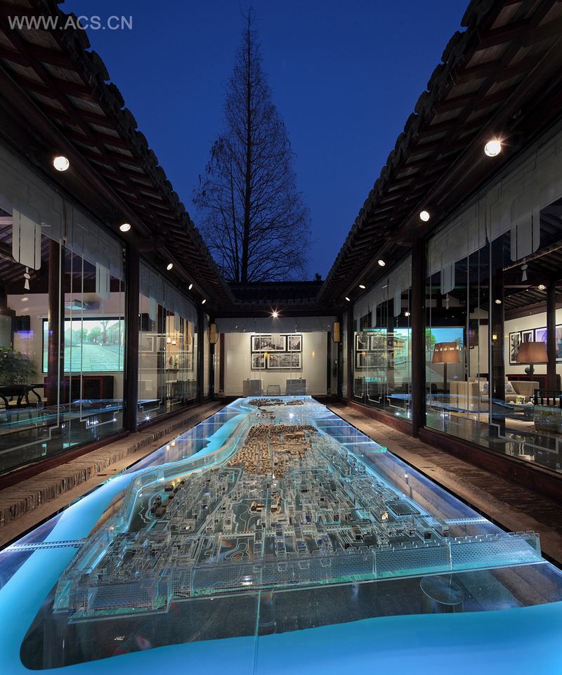 小东园位于南京“老门东历史街区”,其婉约的建筑院落关系,形成了一个绝佳的展示接待场所,在相对局促的空间里展示整个街区的建设成果,又要满足招商功能。设计师将声、光、电等现代科技元素溶入进来,与传统文化的陶器、造景、水墨艺术相溶合,将现代人的行为法则和审美方式相结合,表达设计者希望推崇的“仪式美学”观。