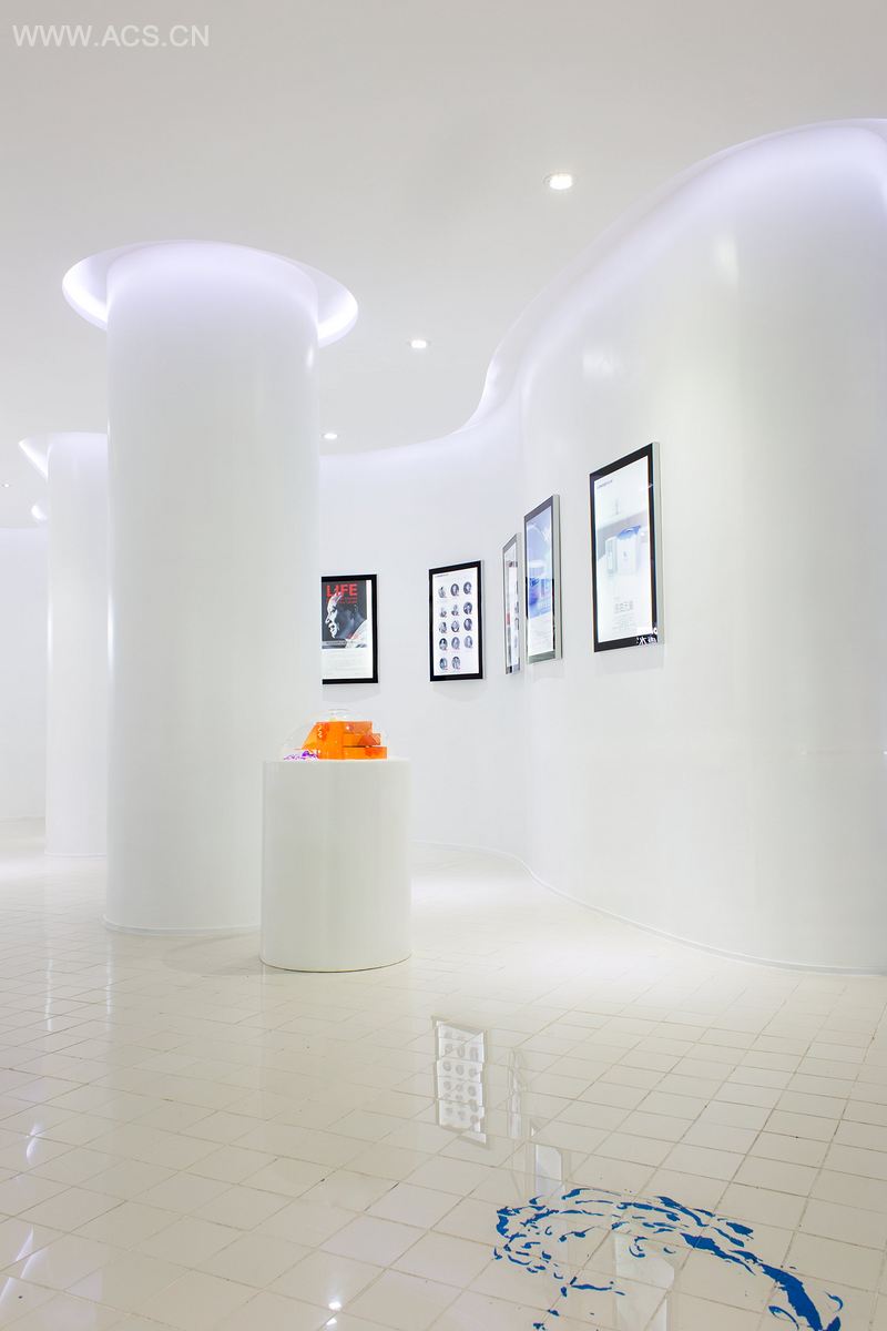 这次的灵感来源于水的分子,这是一个与水密切相关的展示空间,一个水与人之间的相互体验。