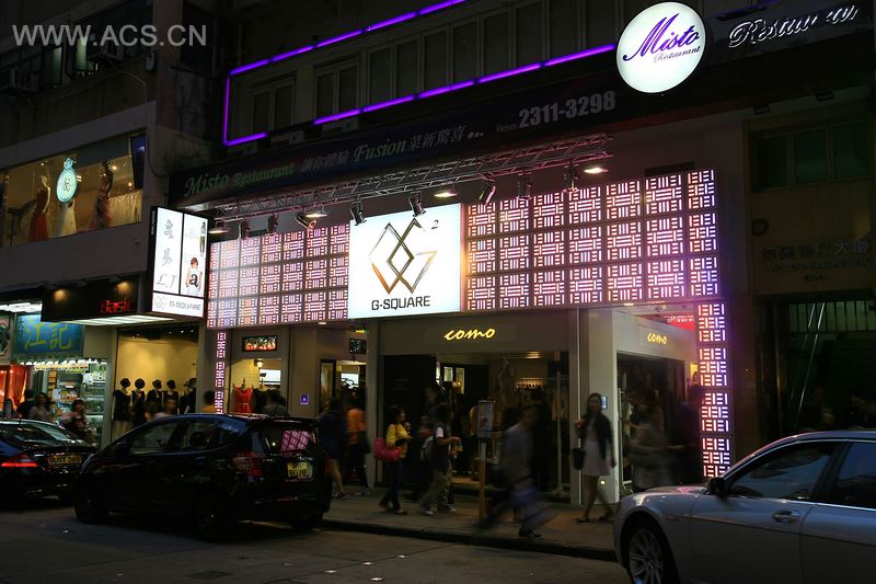 G 广场被设计成一个理想的展示橱窗,供预算紧张但又想推广自己的新锐设计师们展示他们的作品。将普通的过道概念化成走秀台,配合 LED 地灯,用于展示设计师的作品。且利用大型的店面对其进行补充,增加其人流量,同时配备了触摸屏来优化购物体验。最后,天花板被设计成大型的艺术装置,其上明亮的灯箱代表着香港各个地区。