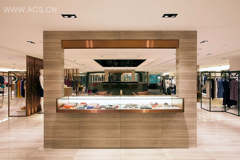 作为奢侈品牌产品专卖店,室内空间的设计理念要体现各种国际奢华品牌产品的精致和优雅。顾客在店内购物时,需要更多的隐私。因此,设计师利用几何形的弯曲线条在购物空间内划分出各种隔断,创造出许多小小的半私人购物空间,店内各处都设置了休息座椅。