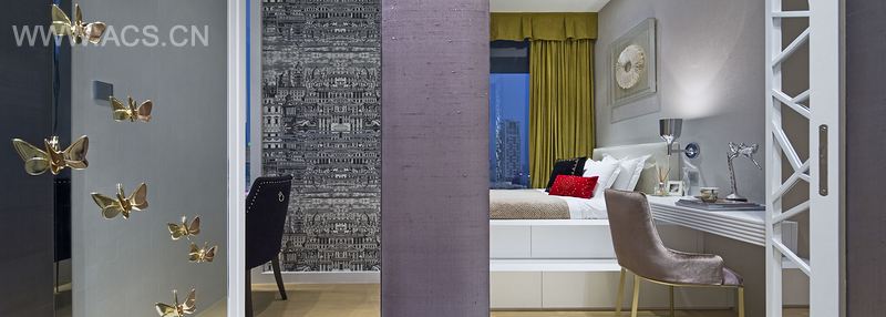 房间装饰趟门,精致玲珑;充分利用窗台空间,配上凸显品味及时尚的家具,全屋色调和风格配合得完美无暇。