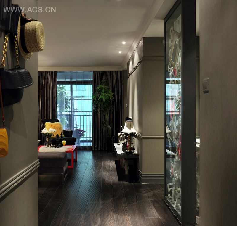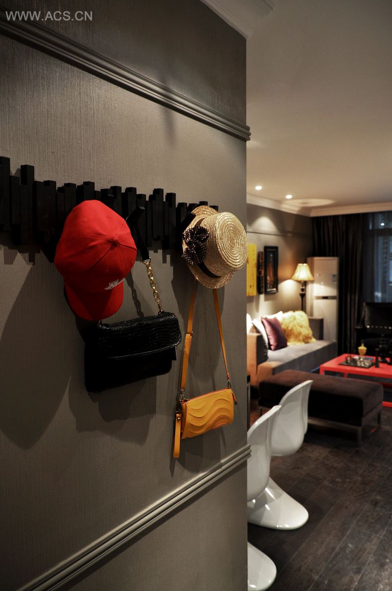 本案以现代风格为主,用深色调来处理装饰面,体现出神秘、内敛之气,再搭配色彩比较艳丽的配饰,体现出强烈的艺术氛围。在感官上产生的冲击,只为突显历史与现代、古典与摩登之间的融合,没有地域特性,没有风格束缚,仅仅在于生活,一种随性而自由的生活。