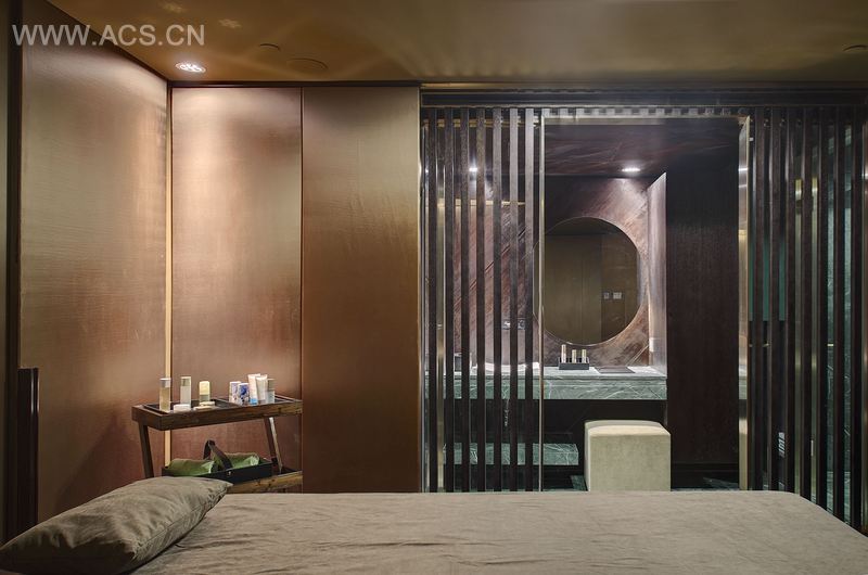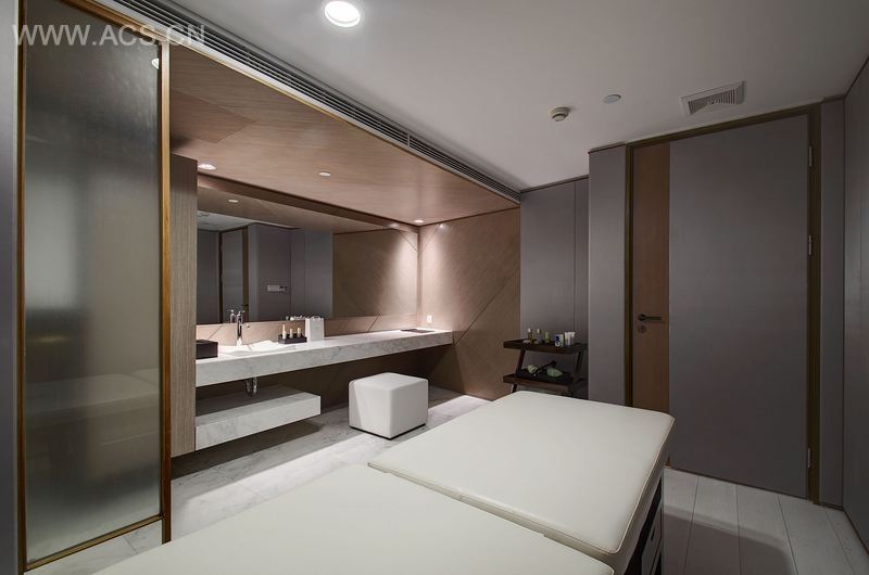 气和色作为本案的重要元素,贯穿整个设计,在有限的空间中划分出不同功能的空间。不对称的线条和曲线将公共区域和主过道装点得仿如雕塑。空间设计在保证私密性的同时,将整个空间连接到一起,增添亲密感。客人们在此能感受到丰富的视觉体验。大地色和纯白色与各种灯光的结合,创造出不同的层次和色调。运用了投影及反射光的组合,光暗层次交织在一起。大量使用的石材、木材和织物给优雅简单的设计带来丰富的质感。设计在满足会所本身功能需求的同时,还给客人带来愉悦的感官体验。