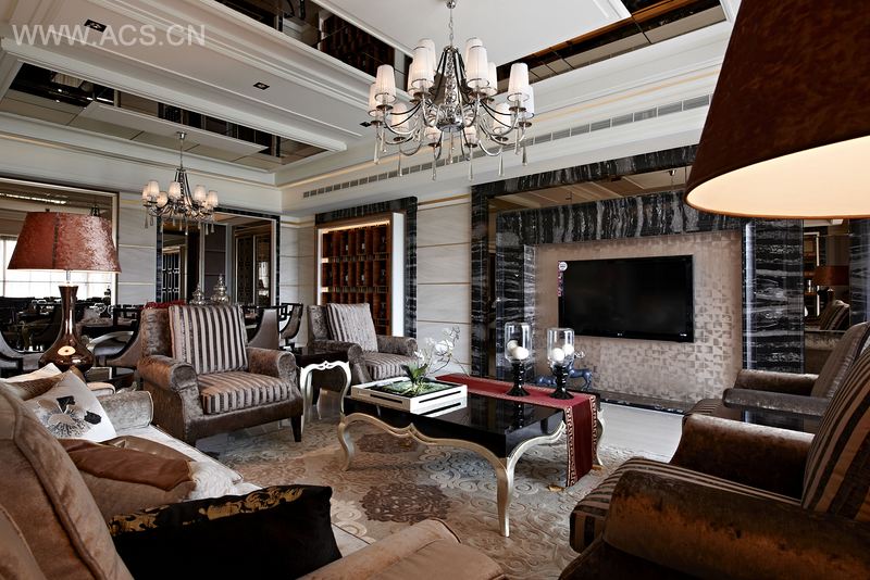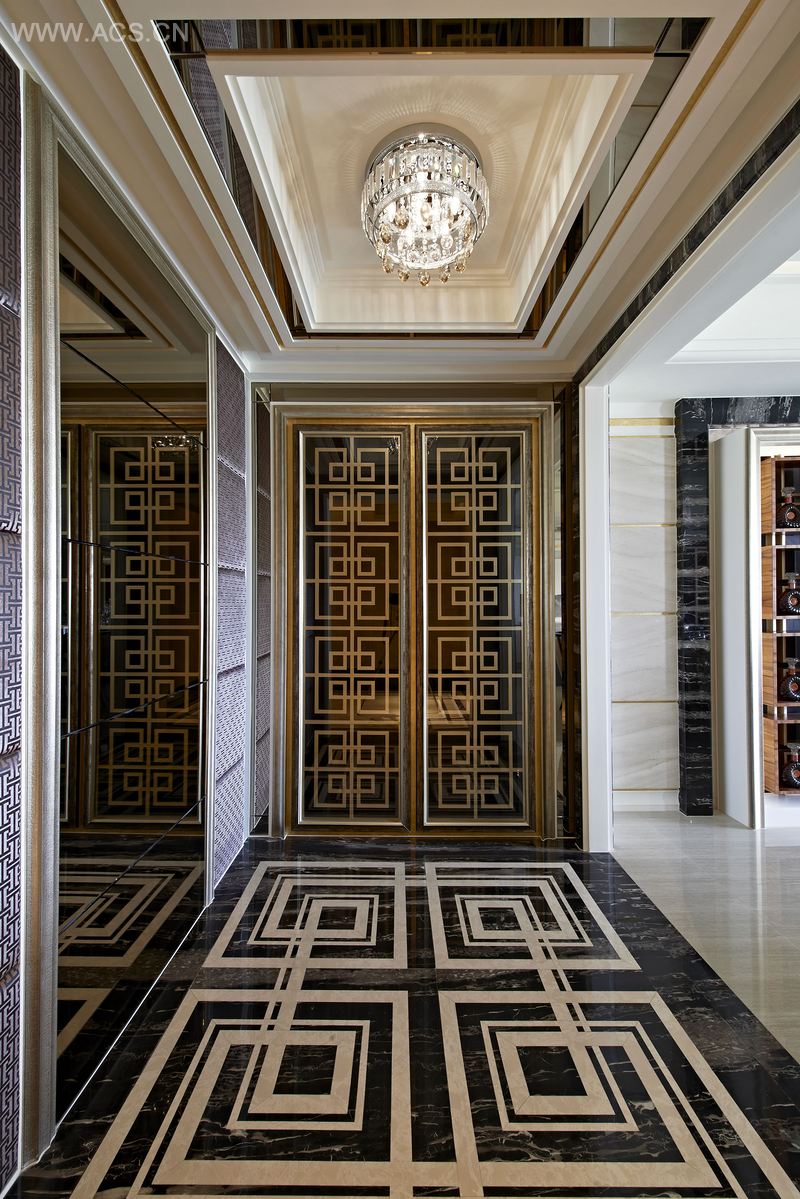 将东方意象的图腾符码与窗棂概念,透过西式现代线条的精准勾勒,保留了华美细致的精品质感,融入了淡淡人文优雅,以全新美感思维,打造大尺度空间美居经典。像是深色彩度下的酒柜外框设定,采取金箔衬底,在深色与金色的彩度对比之中,运用同样的窗棂概念,表达新东方的大器质感深度,有着迷人的新古典灵魂。