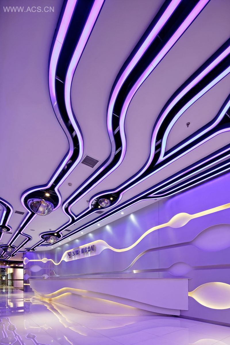 前厅椭圆造型如同“细胞”的形状,通过一条条流动的“血管”相连,也可以视为流动的银河。