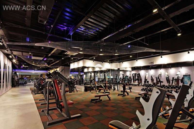 器械区用冷暖交替的灯光营造出丰富的变化,悬拉的不锈钢线如同人体的肌肉纤维,在空间中生长,象征着力量。瑜伽房空间的曲线造型变化奇妙,是源自女性子宫的形状,置身其中,回到我们生命的起点,追寻身心灵合一的理念。