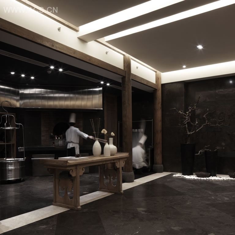 开放式烤鸭房设置在了前厅,烤鸭师傅的操作过程具有浓厚的观赏性,呈现出烤鸭的慢制过程。“慢生活”的设计主题,是设计师为四季民福设置的一种准确定位,同时也是一个切入点,用很自然的方式来表达空间的原生态,通过自然质感的材料表现,以最朴实的形式,展现出一种生活的状态。东四十条店位于二环内的老城区,更注重对老北京生活方式的体现,表现了老北京范儿的慢生活。而旺角店位于望京这个新兴的城区,多以外来人为主,也是年轻人的聚集地,呈现的则是时尚年轻的慢生活。同是连锁的店面,但在每一个新的店面中都会展现出各自的不同特性,而不是简单的设计形式复制。