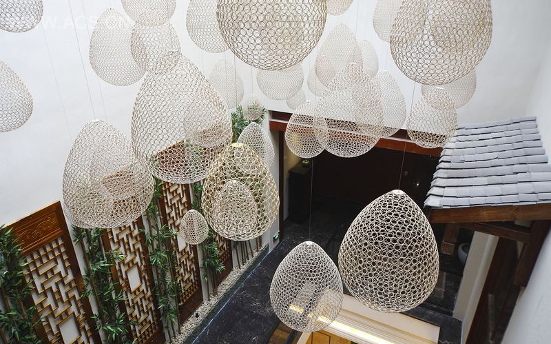 本案定位于中式风格,摆脱传统中式的沉重感,以一种庄重而不失活力的设计手法演绎新中式餐厅。细细品来,从天花板、窗户、门板到桌椅、橱柜、灯饰,等等,无一不是中式元素的凝聚。然而,整体空间却没有凌乱的堆砌感,也不显丝毫沉闷的厚重感,它是一个适合文人雅士聚集的场所,一个翰墨飘香的雅致餐厅。