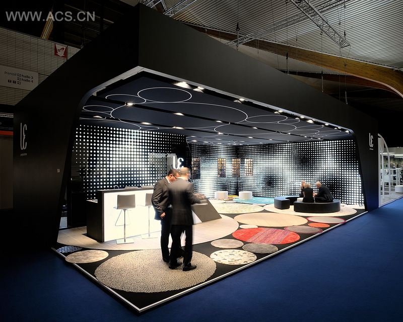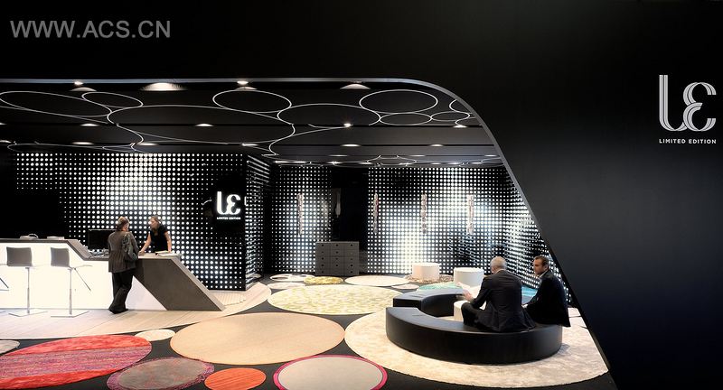Limited Edition展厅的概念基础是互切的圆形农田。地毯切割成半径不同的圆形,像圆形田地一样放置,生成不同小型功能区域。地毯的颜色从黑色过渡到暖色。