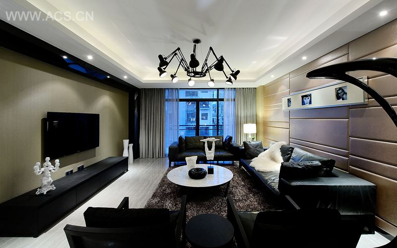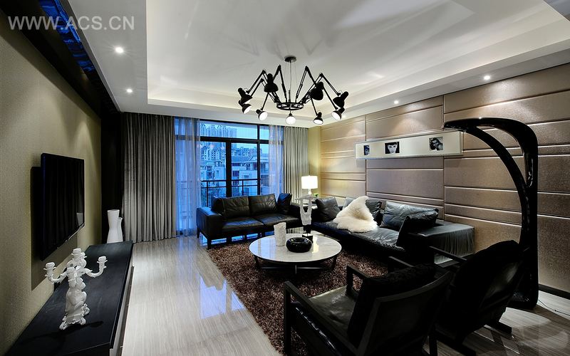 本案是以动·透设计主题,以黑、白、灰三色为基调,运用了温暖的米色点缀,如同拔云见日的那一抹阳光,流转在空间里,漾溢着别样的温暖。素雅的色彩静静描绘了整个空间的格调,利落的线条勾勒出室内的总体构架,没有繁复与凌杂,简约灵秀之中透着隐隐的优雅,我们尊重原有的空间结构,尽量保持原有的美,所以在设计手法只是灵巧地运用不同材质、造型把整个空间有机地融为一体。开放式厨房与客、餐厅连为一体,除拓展空间视野外,也体现了业主对自由平等生活的理想追求。加上局部墙体镜面的使用,使整个空间达到了延伸的效果。家具,灯具以及饰品上的选择,加上通透的灯光效果更体现出空间的现代气息;室内的材质同样运用了玻璃、石材、软包、钨钢以及特殊材质,因此在材料的精细与粗犷之间寻求一种质感的平衡,以及达到不同的效果。
