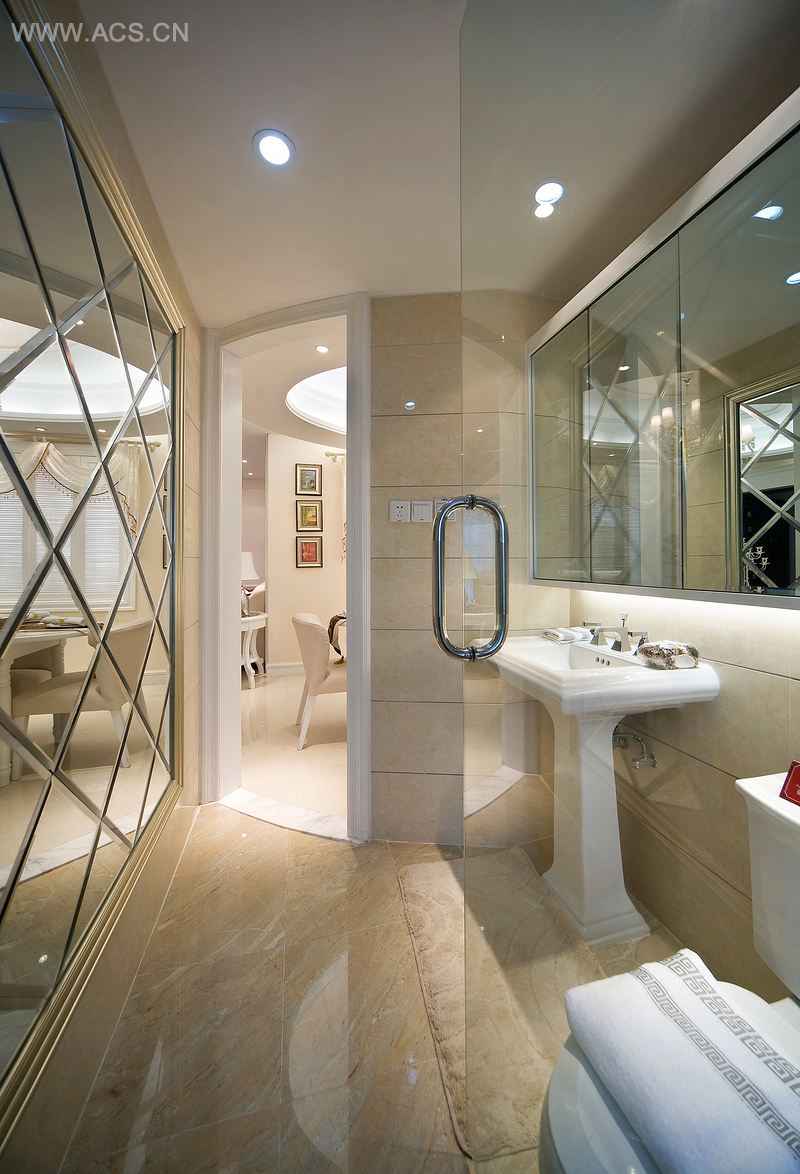 要用材:地砖、白蜡木地板、白色混水漆、皮革、银镜