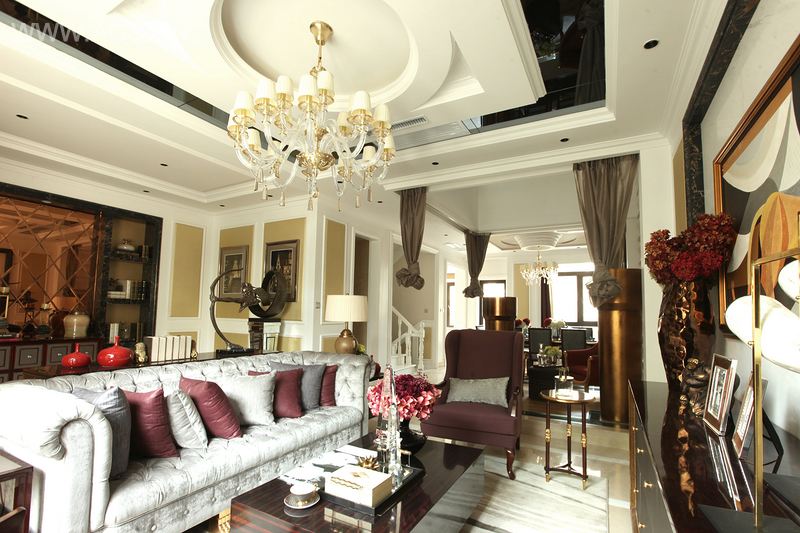 客厅大胆运用蓝白调对空间进行优化,对新古典含义有了新的诠释。卧室遵循新古典风格对空间尺度及开阔视野的特别要求,运用分块形式对空间进行划分,加上精致的欧式脚线,整体空间流出的尊贵与奢华显而易见。