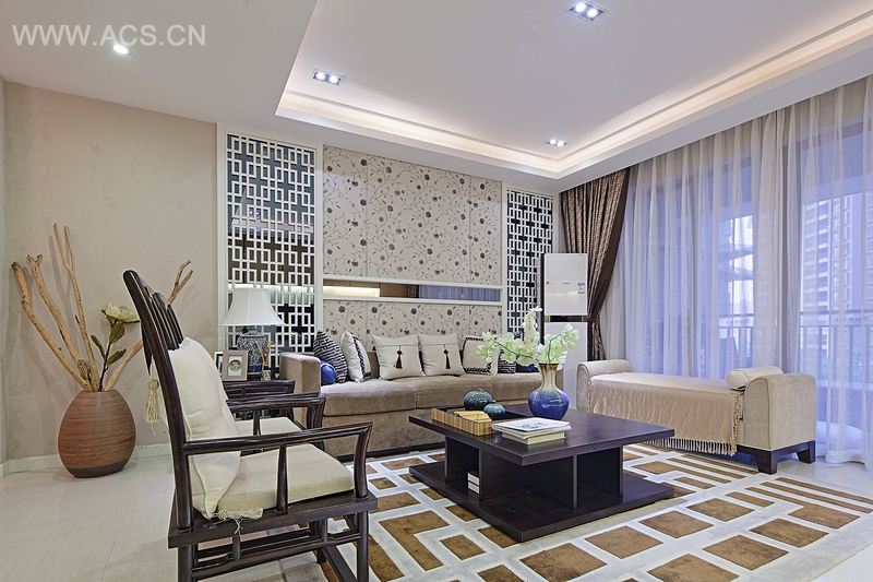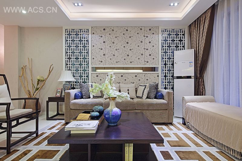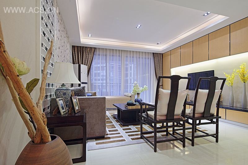 空间以东方简约素雅的的元素,用过现代的手法,以白色调木饰面为主打材料,融合自然屏风、主题性工艺品及与墙身相互相成的的布艺,营造具有新东方风情的空间氛围。