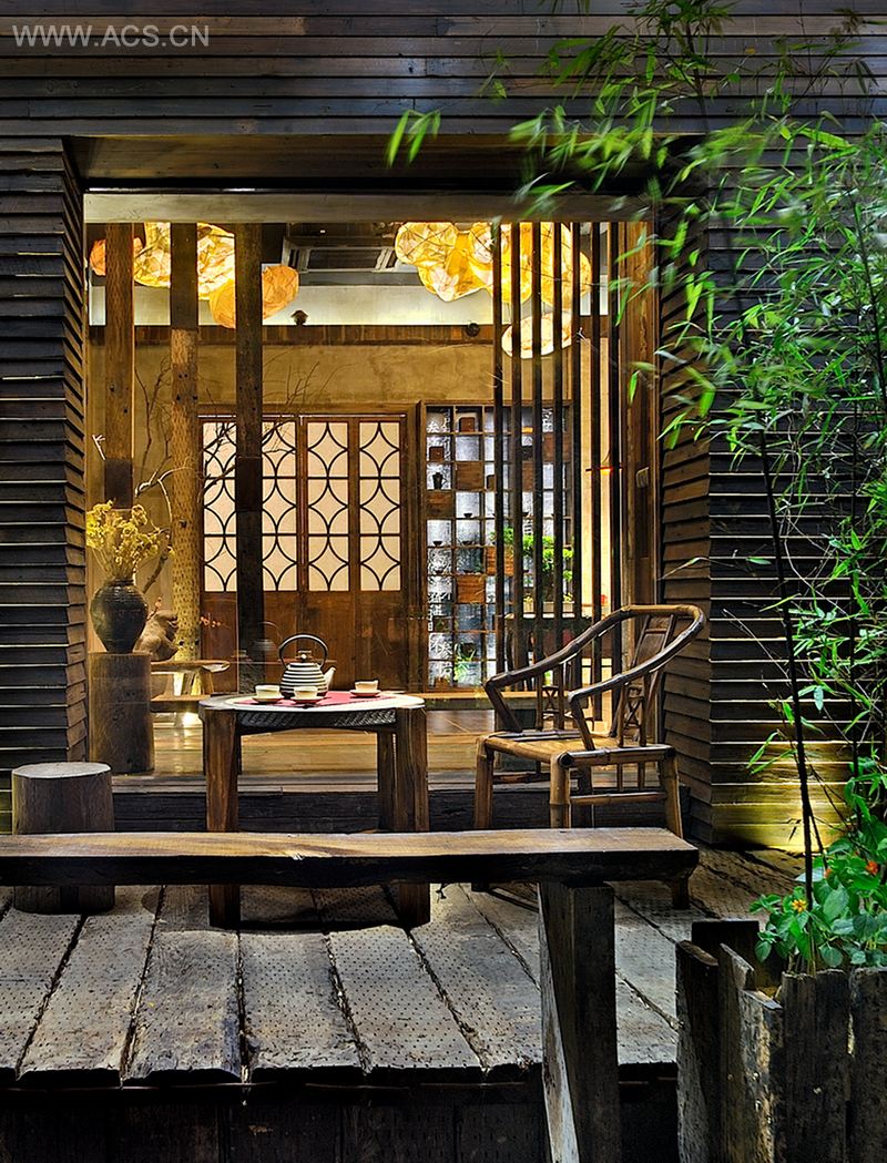 古逸阁茶会所作为设计师“浮云”系列作品之一,“无像无相”是其对空间意境的崭新诠释。这种创造的源动力让这个会所衍生出别样的气质,以木为媒,以禅为念,心清助道业,清苦得心定。人若谢物,物未必不知。以物为善而无贵贱新旧之分,这是种人生的选择,也是种设计的态度。善用旧物成为设计师解决问题的一种态度,衍生出一种新的生活方式。于是在古逸阁的空间设计中,材质之间的呼应与衬托、线条之间的交织与平衡、几何形态之间的构成与对比没有多余的一笔,不带丝毫拖沓。在这样没有喧哗的交流中,整个空间似乎变得香醇,人们的心情也就明朗了起来。