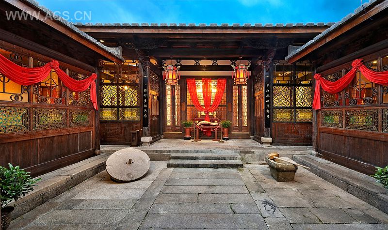本案坐落在最具有代表福州悠久文化底蕴的建筑群落三坊七巷之中。在设计伊始,我们团队就秉承着设计要立足在坊巷整体格局特点之上,提取再整合,取之再跃之的设计理念。方案设计思路就一直贯穿将设计融于自然,融于其本独有的建筑味道之中,使中式富有层次,韵味十足。