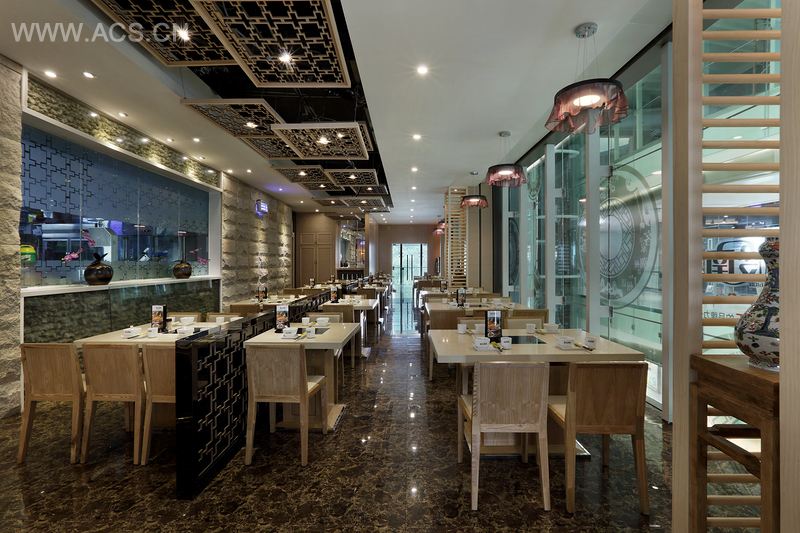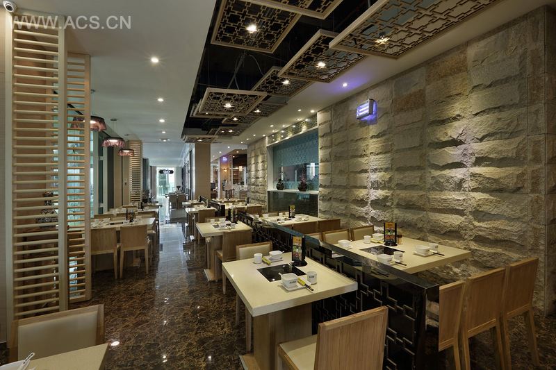 “舌尖岭南”是五谷芳新派岭南特色餐饮品牌,以承传岭南饮食文化为已任,集岭南之特色,精研考究。具有岭南特色的美食餐饮,所以餐厅设计采用现代时尚的风格,咖啡色大理石的地面,对于人流量巨大的餐厅,餐厅卫生的清理也是设计师考虑的其中之一。墙面毛石,使餐厅氛围具有一种自然质朴的感觉。南方特色莫过于海鲜产品,食用过的蚝壳清理干净后,设计于前台使用,将企业特色的传统美食以现代艺术的形式表现出来,这种设计创意获得市场高度认可。餐饮空间设计就是绕开大众化的设计模式,另辟蹊径,独特定位,才适应于眼下挑剔的消费者。