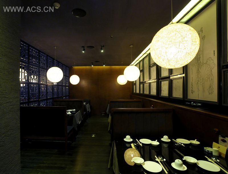 本案位于古丝绸之路新北道重镇乌鲁木齐,简约的现代时尚感与东方元素的抽象剥离深植于整个空间之中,蕴含大气深邃的东方意境。设计师从传统东方元素中汲取灵感,精致典雅的青花瓷陶盆,意趣黯然;入口处质感的海藻泥与中式木隔断虚实对比张弛有度。大厅一座座鸟笼形木条隔断相对独立私密而又整体独具个性;包间走道一排粗犷大气的中式金色门框,颇有皇家气派。设计师炉火纯青地运用厚重色彩,加以配饰的白描挂画使得空间透气,勃勃生机。这些传统东方文化绝不简单罗列,而是通过当代设计形式、语言,张扬地表达当下的审美气质。在这个充满想像的空间里,当代艺术和传统文化邂逅,艺术与空间碰撞,生命在空间充满盈动,而拥有一种浪漫主义的气质,成为你心理皈依的地带。