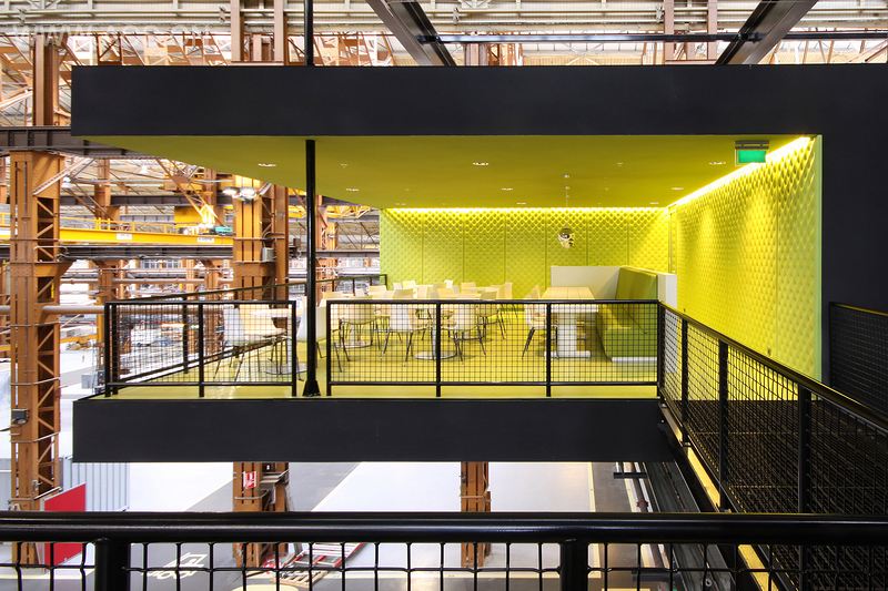 在鹿特丹港口中心,建筑师Groosman Partners利用一个旧的卡车起重机厂房悬挂起一个1000平方米的办公空间。大厅坐落于RDM地带,近期改建成教育和创新校园的一个旧造船厂。Innovation Dock 被学校使用,小规模的创意公司也在市场中营运。