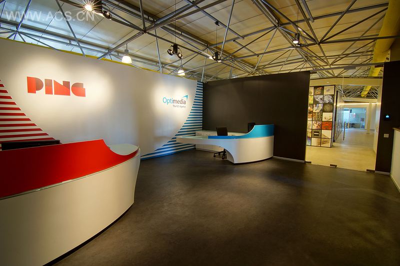 该项目专为同一层的两个不同公司而设计。一家是拥有36名员工的“Optimedia”,另一家是拥有70名员工“Ping”,共享一个980平方米的空间。入口大厅按照简约原则设计供两个公司使用,而且每个公司的身份都是通过他们的企业色彩来强调。