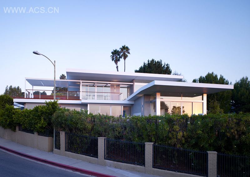 为了重塑一个山顶房并给它增加第二层,Montalba Architects 改变现有的屋顶线,用一个新的水平屋顶战略框下洛杉矶市中心和太平洋的景致。曾经黑暗的单层房子转变成一个明亮的“城市海滩的住宅”。温暖的木材色调贯穿整个房间,给原本柔和的白色和中灰色增添了一个有机元素。建筑师运用这个“以减而增”的方法最大化内部可用空间,利用住宅新的线条框下远景图案,以统一景观视角点。Montalba 利用宽大的玻璃板——很多地方以落地墙为特色,向花园院子敞开——进一步提升住宅室内/室外的品质。温和的、受海岸启发的材料贯穿整个空间,包括浅灰色的灰泥粉刷外立面、刷白的橡木地板、白色的石头、柚木制品、大海色调的玻璃瓷砖。由此产生的清晰的线条、室内/室外生活方式、宁静的调色板、愉快的微风和框下的海景营造了一个当代的海边别墅,尽管它在山顶。