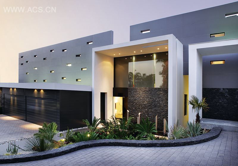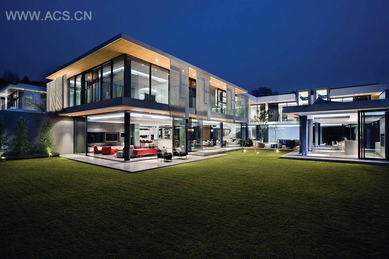 “该场址分为两个部分,一个共同的入口和向南的车道可进入这两栋房子。两栋房子都是u形结构,使得他们围绕着一个面向北方的内部庭院,庭院为所有的生活空间和游泳池提供入口。”项目合作伙伴Greg Truen说。