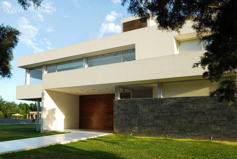 灵感来自于Bauhaus原则的有着流畅线条的纯白外观,被镶嵌着黑石板、钢材、木材的墙面打破,大面积玻璃窗的使用不仅打破了着纯白外观的沉闷,更是将周围的风景和自然光线带进所有房间。