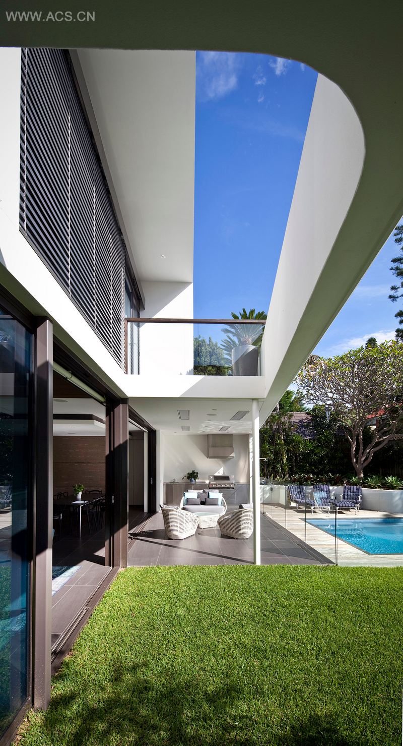 由于没有广阔的外部景观,通过使用连接景观的渗透性空间,房子创建它自己的景观和景深。这些空间被设计来捕捉不同质量的自然光线,创造一个移动的织锦,作为房子对移动的阳光的回应。