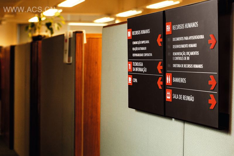 门德斯·朱尼奥尔公司在巴西乃至世界各地都一直活跃于土木工程建筑业,承接了高速公路、铁路、地铁、港口、水电大坝、热电厂、石油和天然气等种种项目。本案基于钻石(门德斯·朱尼奥尔的象征)的形状和比例,设计了导视系统的象形图和数字。