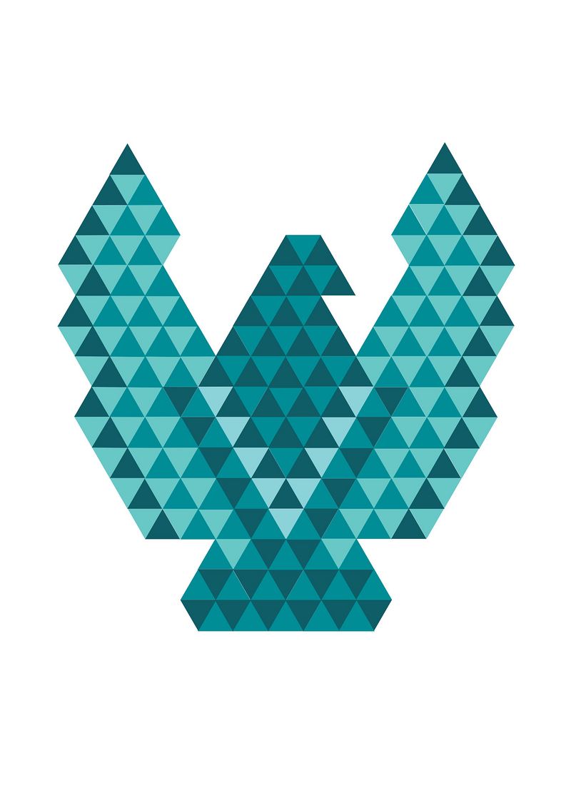 等边三角形的设计手法被运用在导视系统设计中,通过三角形状组合转变为其它形状的图形。凤凰鸟是林国荣大学的灵感象征,故而将其转化成四个特殊鸟运用于导视系统的想法应运而生。这种鸟分别为猫头鹰、孔雀、鹰和犀鸟,选择它们的原因在于其对应的特征能象征凤凰鸟。在项目中这四种鸟各自代表一栋建筑物。