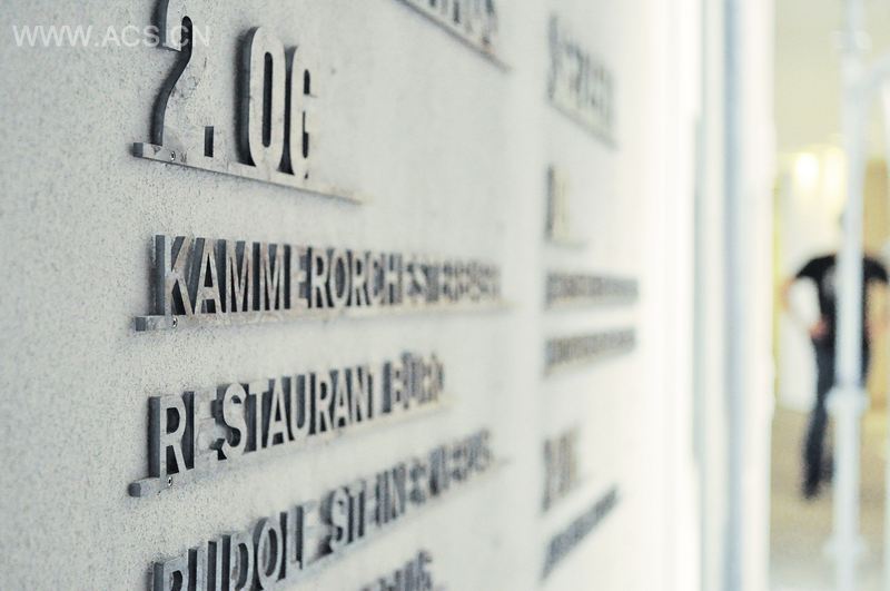大号文字被钉刻在庭院的墙上,指明这栋建筑的历史用途。Notices设计的可拆卸金属字母由激光切割的铸铁片制成,并被直接用固定在墙上。