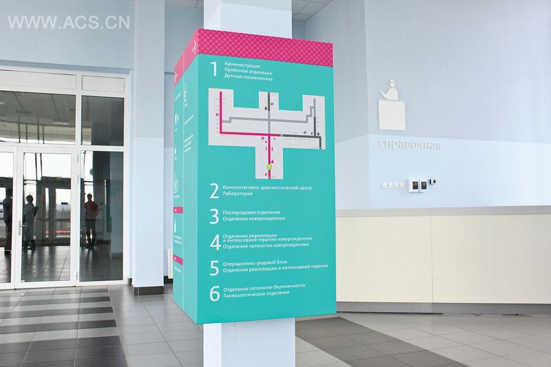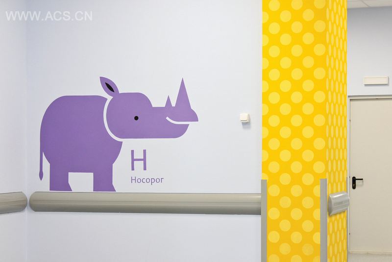 根据俄国联邦卫生和社会发展部的要求,俄国共有23个产育中心。但是,它们都没有现代化的导视系统和信息系统。Perm与Perm Center of Design一起,为Perm产育中心设计出一套导视系统,将一个巨大而冷漠的医疗大楼转变成一个充满亲和力的空间。针对3岁以下孩子的区域,墙上安有ABC和相对应的动物图形。