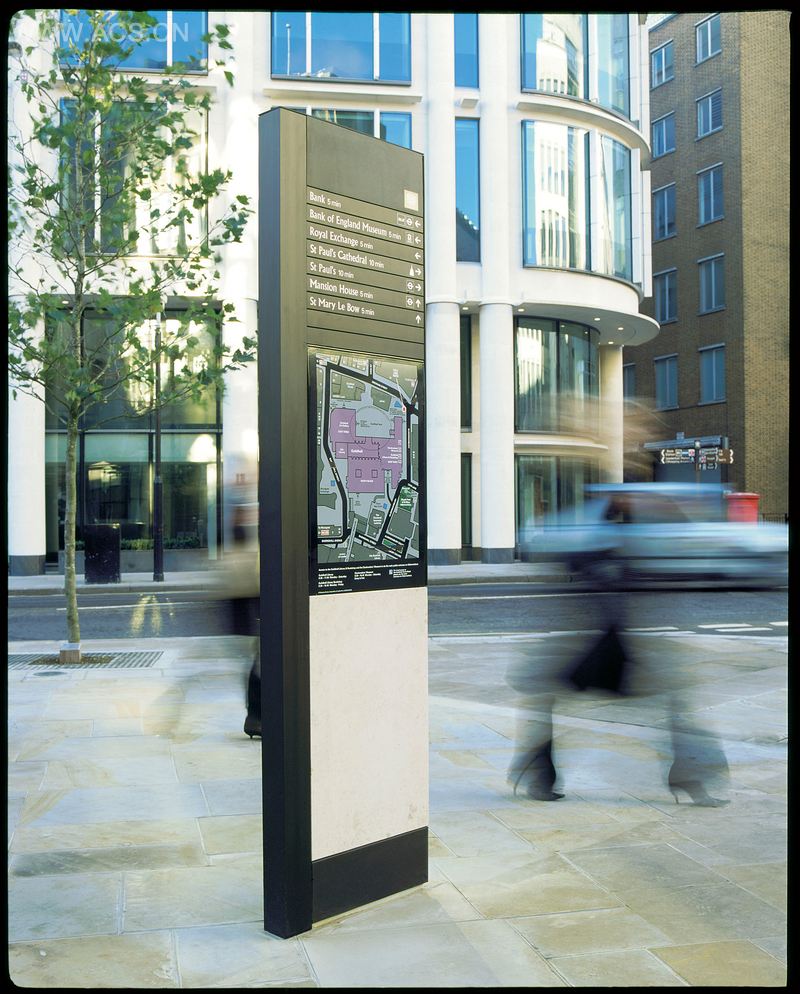 伦敦市的导视系统设计包括对这个城市的历史构成和区域特点的细节分析以及对各地点、地标和名胜区的研究。但是最关键的理念在于设计出一套清晰明了的指示和导引系统,包括设计伦敦市的新地图,并采用合适的材料来设计制作地图、节点、指路牌的新结构。