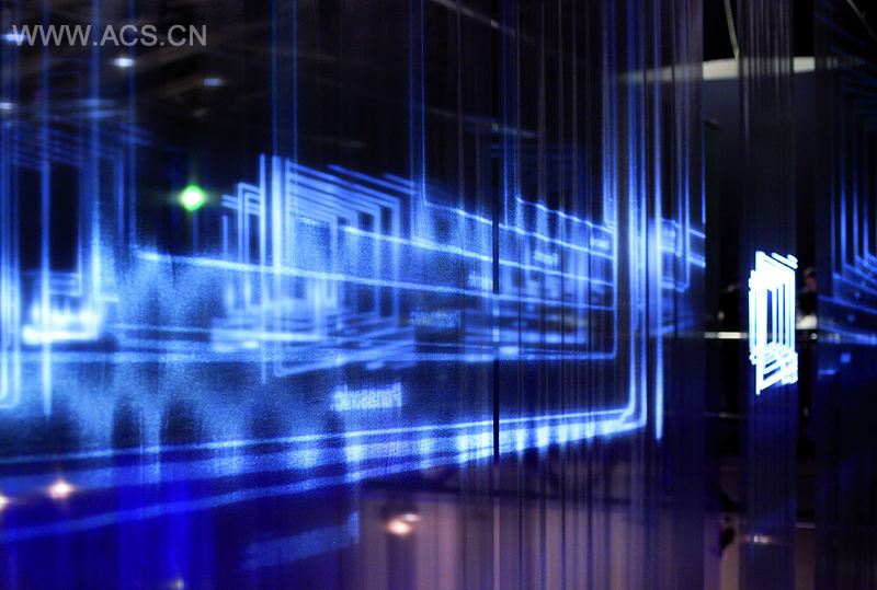 根据“走进3D世界”的主题思想,2010松下展会呈现了娱乐电器的革新设计。易感知的3D体验空间艺术性地将新奇的3D屏幕技术转化为一个空间设施。交错的视频投影,半透明织布状板块伴随参观者从地面游览到上层楼面,同时设有全息舞台表演展再一次展现3D世界。