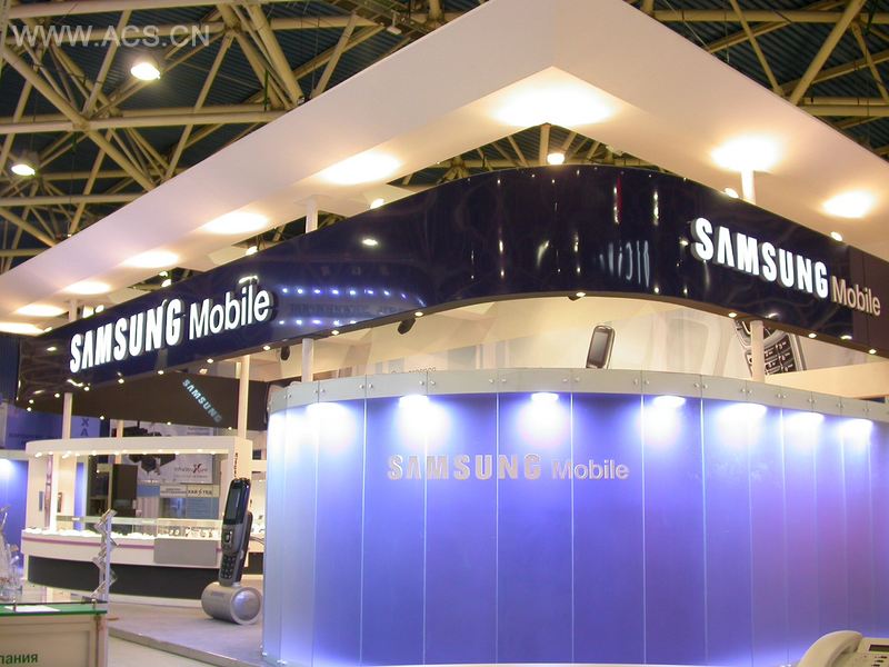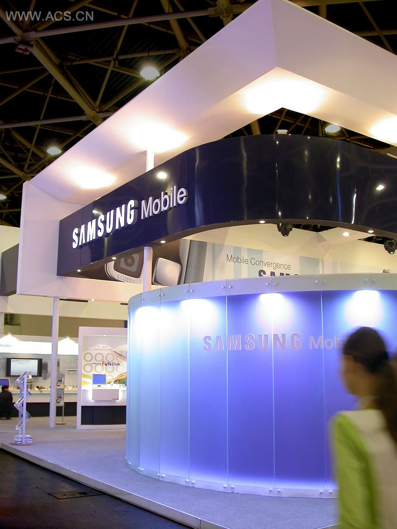 整体设计概念是在新品、科技和网络系统的展示中营造强大的气势,同样也希望通过大胆的现代化视觉展现三星产品的设计。主要展览空间看起来就像两层楼一样高,配以大型天花板和高架标志。由于空间限制,设计师设计了两个相邻的空间,一个用于产品的展示说明,另一个用作网络系统设备展览、会客室和媒体室。为了减轻视觉混乱,赋予展区时尚现代感,设计师使用白色、黑色、蓝色和银色来吸引参观者,保持设计的精致。