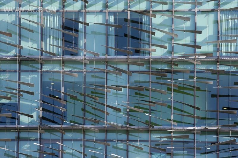 南面的外立面的不规则褶曲铝质百叶片是设计小组与艺术家Alison Turnbull共同创意的结果。这些漂浮物不仅美观,还可以收集太阳能,让室内制冷的负荷始终保持在一个最低的消耗值。
