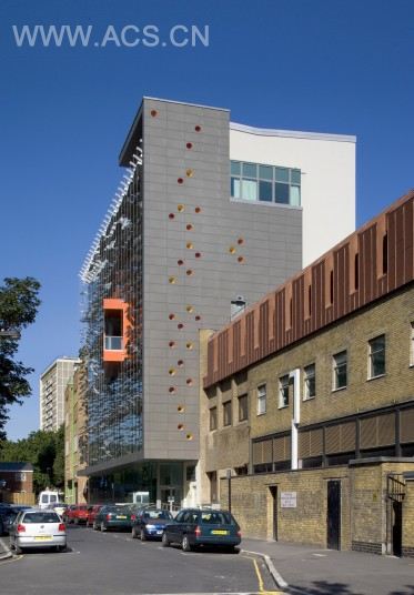 当然,环保的设计也不仅仅体现在这点上。中心所处的城市中心环境使得这里的空气质量相对糟糕,这无疑限制了自然通风的方式。对此,建筑师的解决方案是最大限度地提高能源效率,通过对废气进行热回收,然后进行自然冷却。另外,设计师还特别强调尽可能地运用自然光,在光线不足的地方则通过低能荧光灯进行补充。建筑还尽可能地运用可持续性材料,例如地板都是采用油毡和山毛榉。