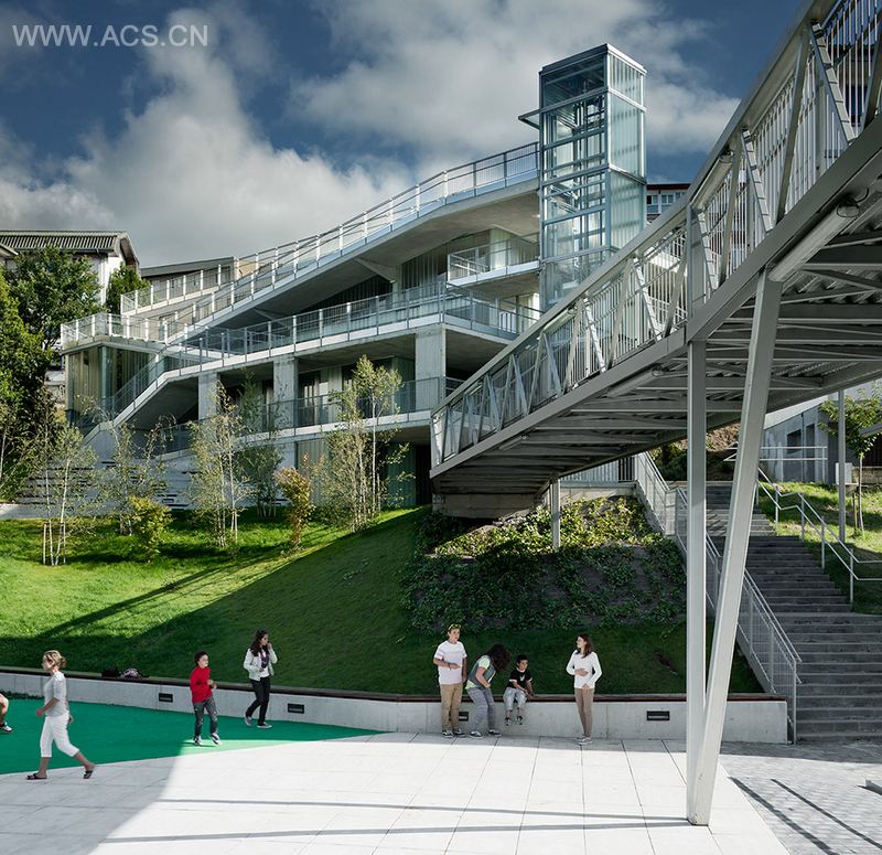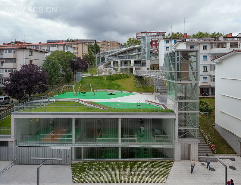 工业化浪潮后的衰退工业小镇Galtzaraborda被植入一个更新项目。该项目建于坡地之上,在紧凑的面积内容纳了111个停车位,并有两个全景电梯和坡道联系公共交通,甚至利用台地式造型产生的屋顶空间创造出绿化用地。在高密度的用地环境中展现出极高品质,并为这个小镇的带来一份可达性高的公共城市空间。