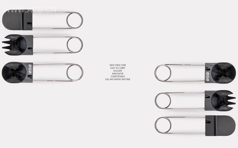 你常常觉得在旅行吃饭时候,食器是很不容易取得? 有些旅行用的餐具设计虽然很好但是却又占空间,在吃饭时候也不容易找到与取出? 针对这个部分我们尝试从中提出问题并找寻答案。其中最有意思的部分是,我们发现,如果能够把餐具”穿”在身上而取代了”带”在身上,那会是非常有趣的体验;他能够提供使用者方便拿取并且立即使用的好处。因此,我们试著将餐具设计成别针的型状让人们穿在身上,当然,他还是具有基本别针的功能,并且在往后他能够成为你身上精美的流行配件。